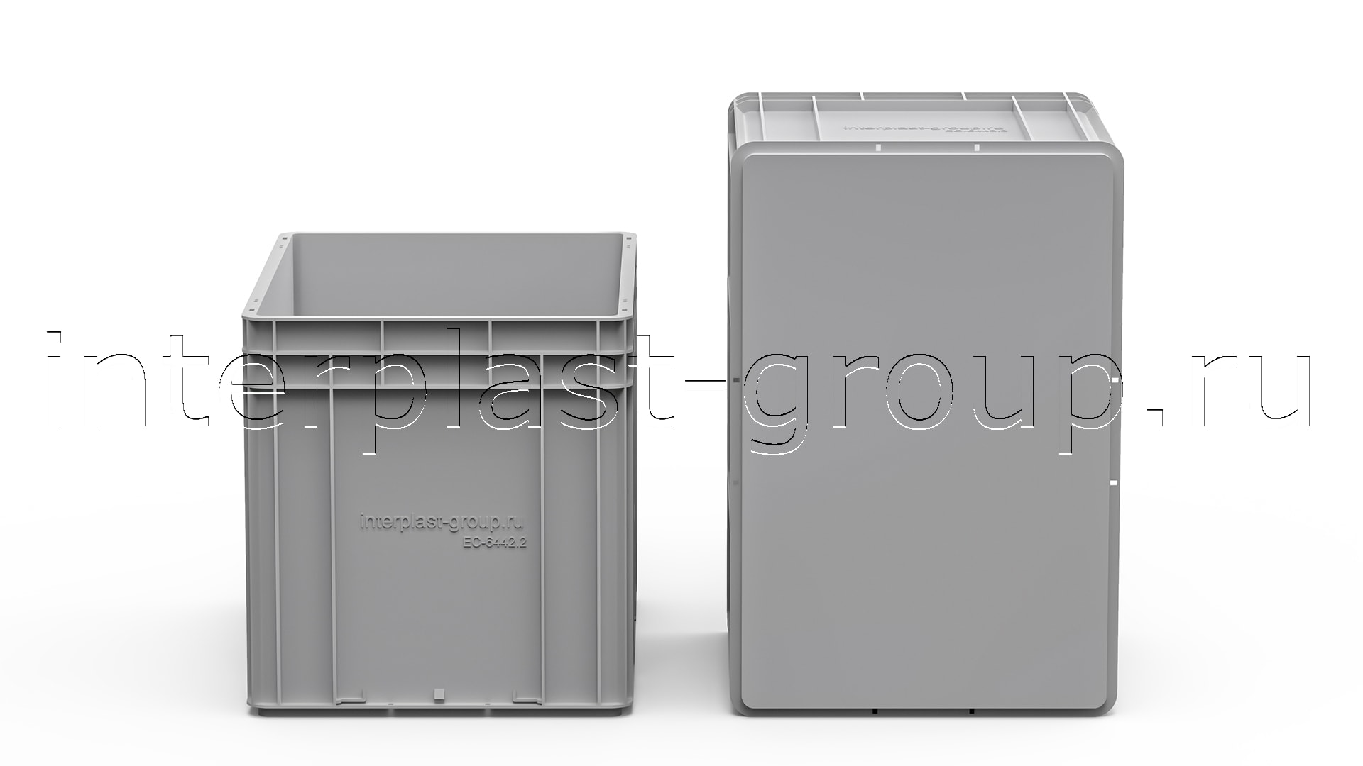 Евроконтейнер закрытые ручки/сплошное дно (серый), 600x400x420 мм
