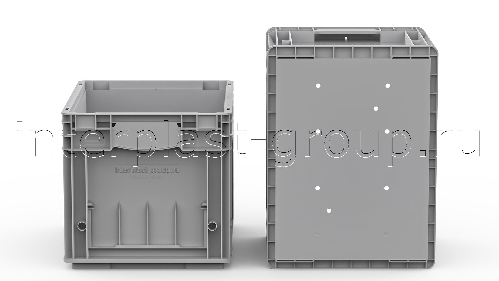 RL-KLT в сером цвете изготовлены с добавлением вторичного сырья, в связи с чем они дешевле аналогичных контейнеров в голубом цвете.